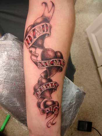 Heart Tattoo Combination With Letter and Rose Tattoo Designs